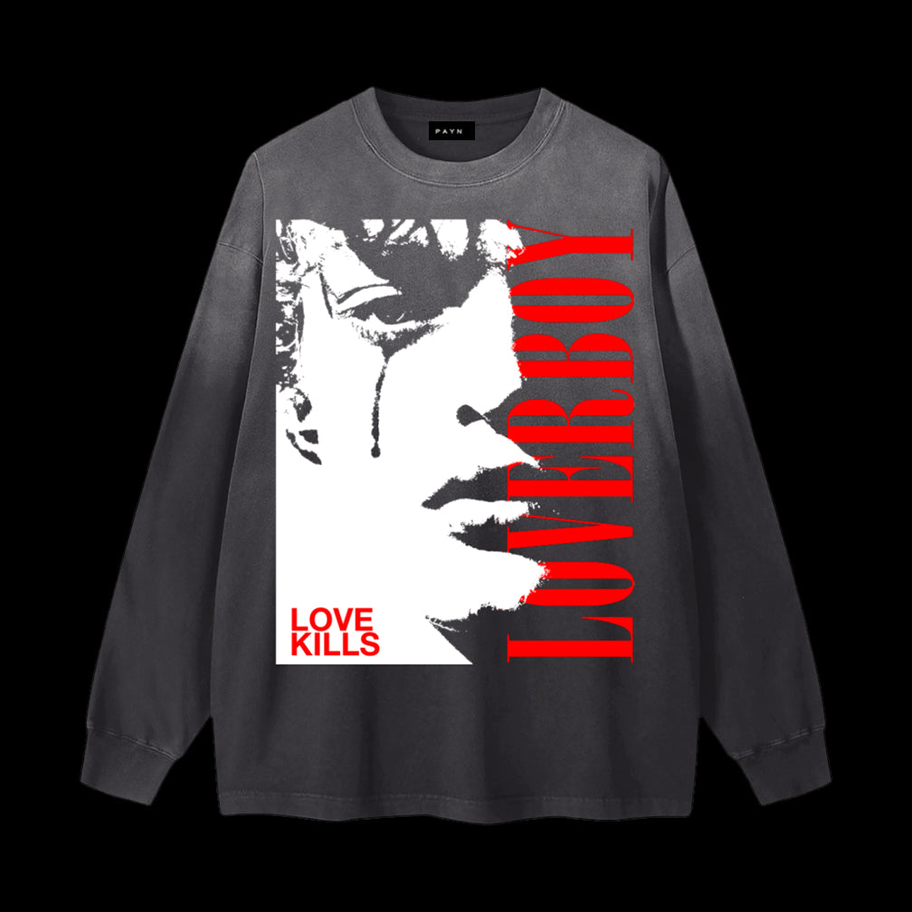 • Vintage washed-out finish long sleeve tee.